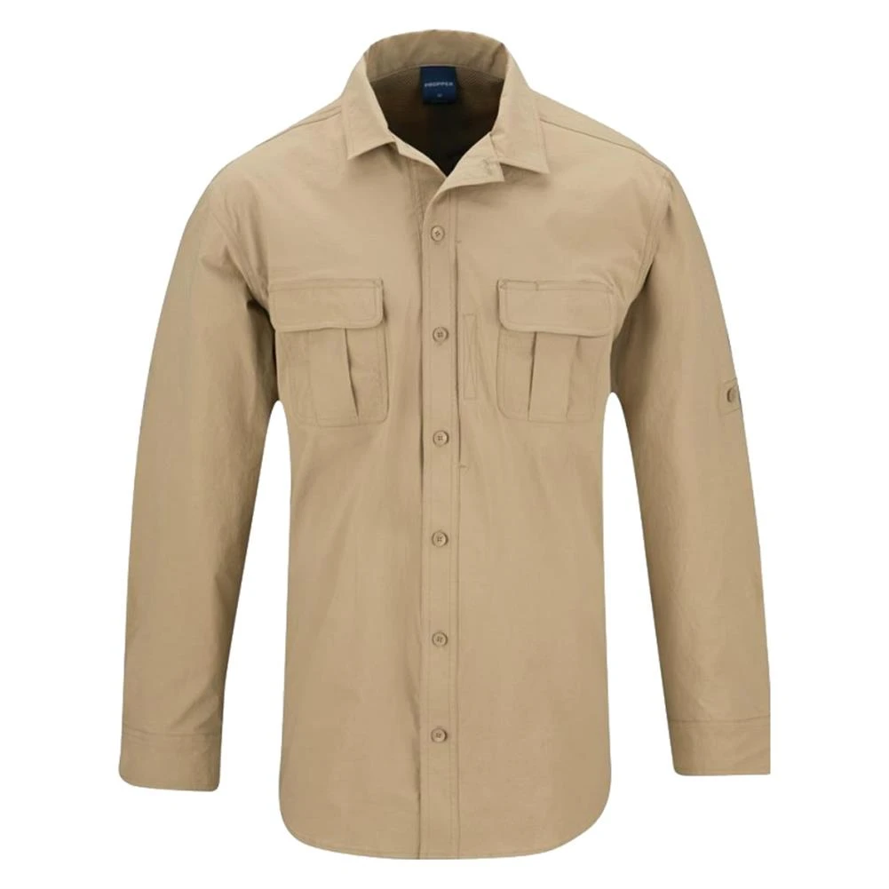 The Propper Summerweight Tactical Shirt is guaranteed to keep you cool and comfortable when working in hot conditions. Built from a blend of nylon and spandex ripstop, this lightweight fabric wicks moisture away from the body to maintain a cool, dry environment. A mesh shoulder yoke on the back improves airflow to avoid overheating during hot or intense activities. The fabric features UPF 50 protection from harmful sunlight, ideal for long periods of time spent outdoors. For added functionality, the front chest pockets are made with fast-tab loops to provide rapid access to accessories. When the temperature rises, this lightweight, durable shirt provides the ventilation you need to keep cool.
